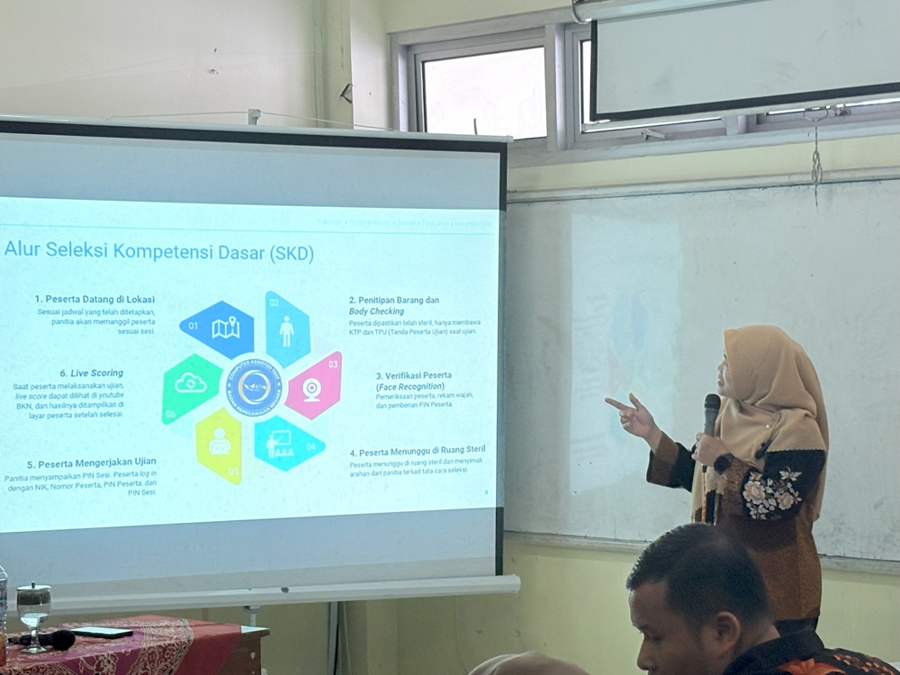 Hadir dalam kegiatan ini Bapak Sandytya Hariyadi, Ibu Nining S.P., dan Ibu Lusy Kartika dari Biro SDM Kemenkeu, serta perwakilan dari Direktorat Jenderal Bea dan Cukai, yaitu Bapak Eko Setyawan dan Bapak Agung. Mereka memaparkan informasi terkini tentang rencana pembukaan seleksi CPNS 2026, yang dijadwalkan pada Februari 2026.
